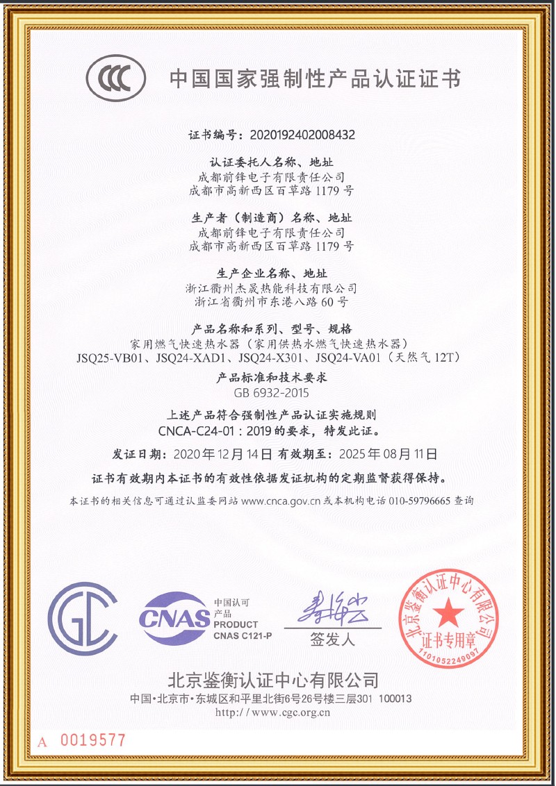 前鋒恒溫式熱水器XAD1